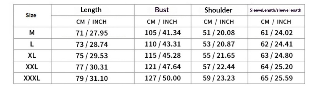 Note: 1. Asian sizes are 1 to 2 sizes smaller than European and American people. Choose the larger size if your size between two sizes. Please allow 2-3cm differences due to manual measurement. 2. Please check the size chart carefully before you buy the item, if you don't know how to choose size, please contact our customer service. 3.As you know, the different computers display colors differently, the color of the actual item may vary slightly from the following images.